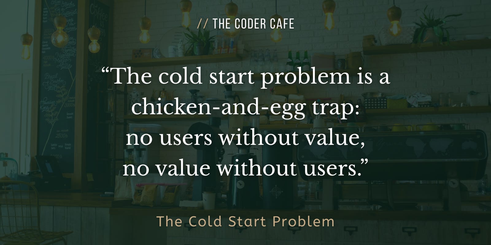 The cold start problem is a chicken-and-egg trap: no users without value, no value without users.